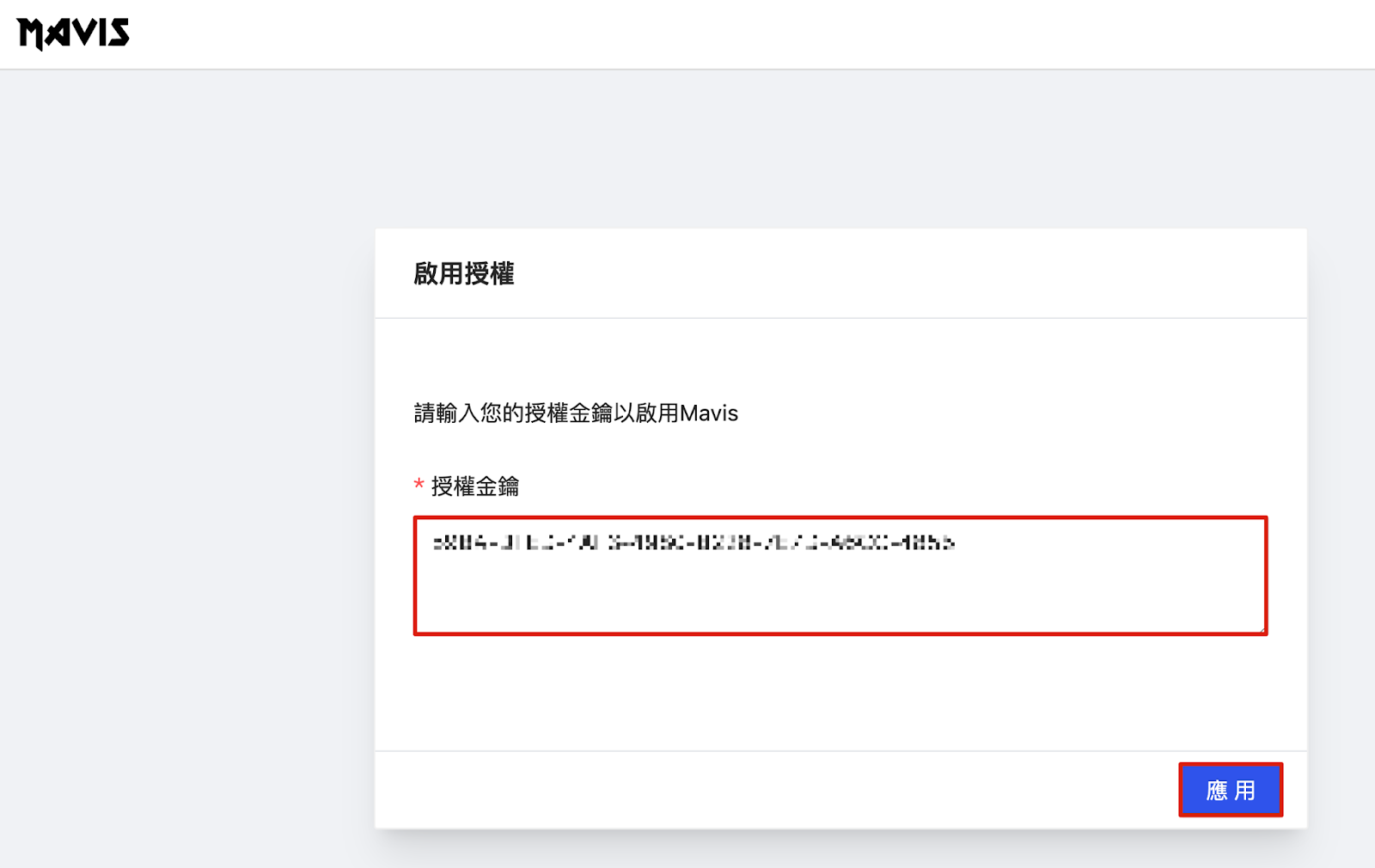 Step 2: After logging in, the system will prompt you to enter the Mavis License. Please contact your designated representative to obtain the License.