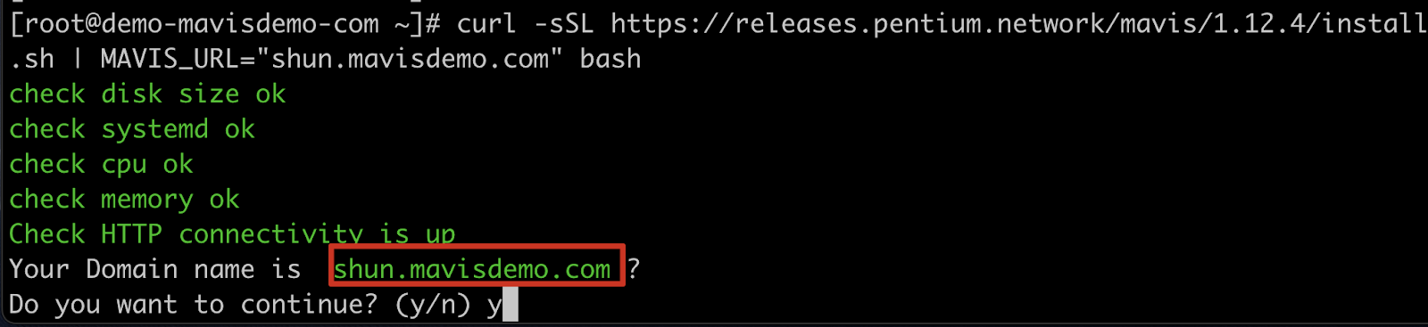 | curl -sSL https://releases.pentium.network/mavis/latest/install.sh | MAVIS_URL="your_fqdn_name" bash |