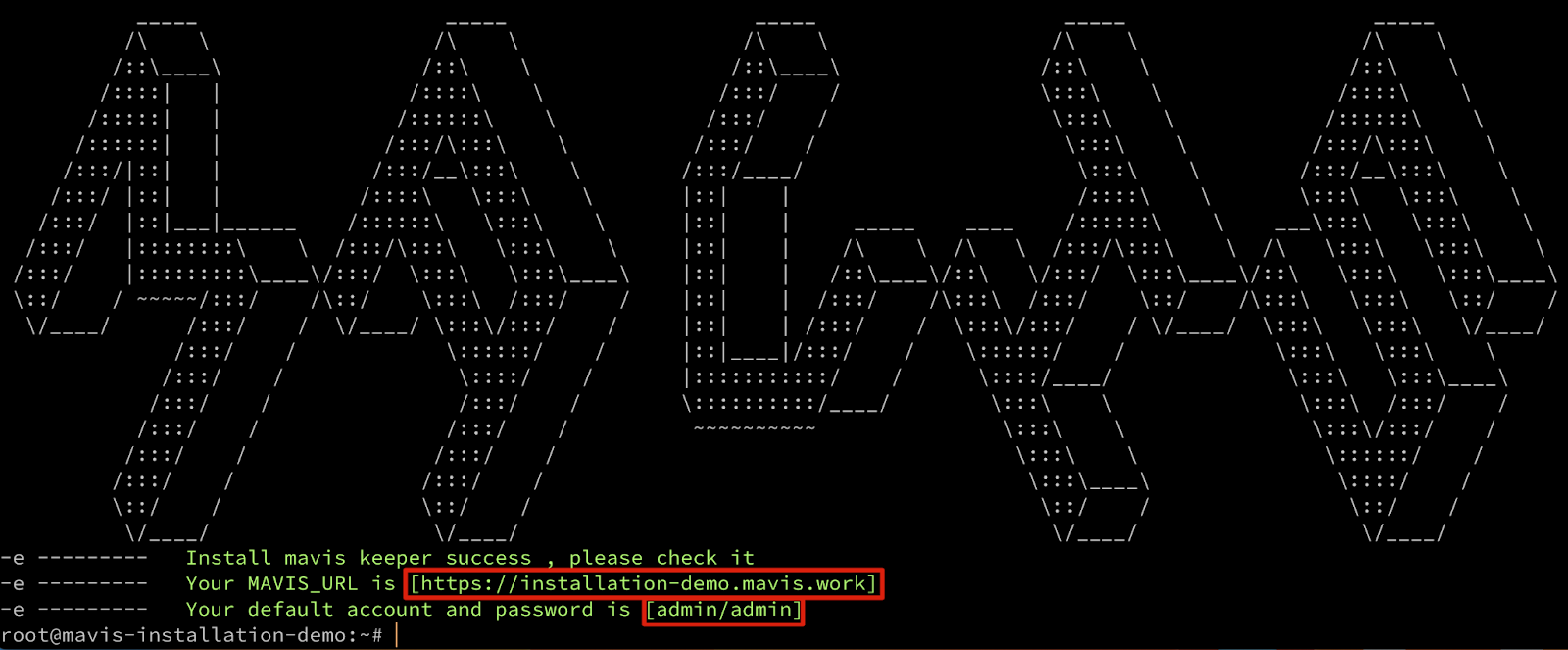 Step 4: After the automated installation is complete, the connection URL, along with the default login account and password, will be displayed.