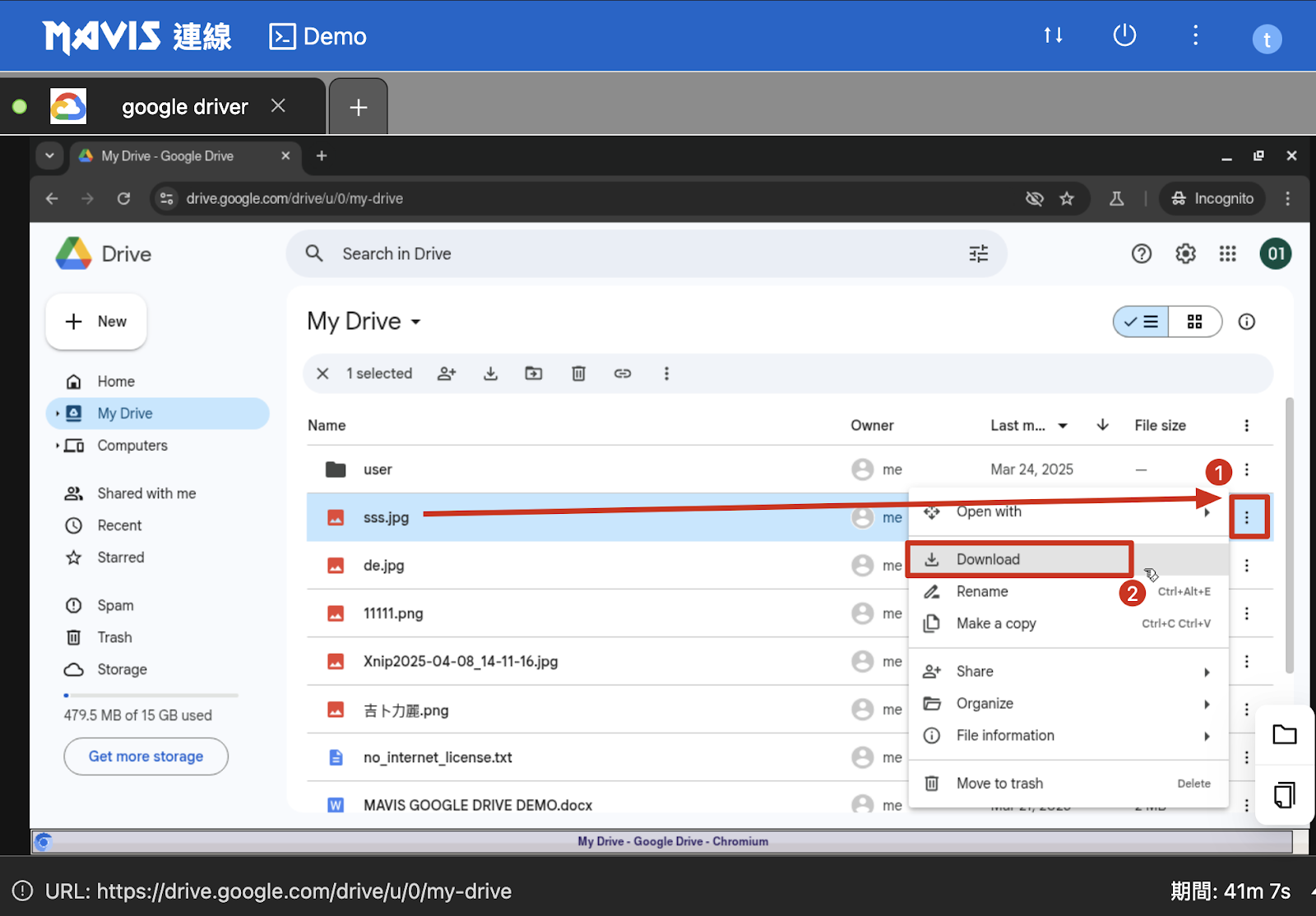 This document explains how to use the MAVIS Web Application to connect and perform file upload and download operations, using Google Drive as an example. The overall process is divided into two main steps: