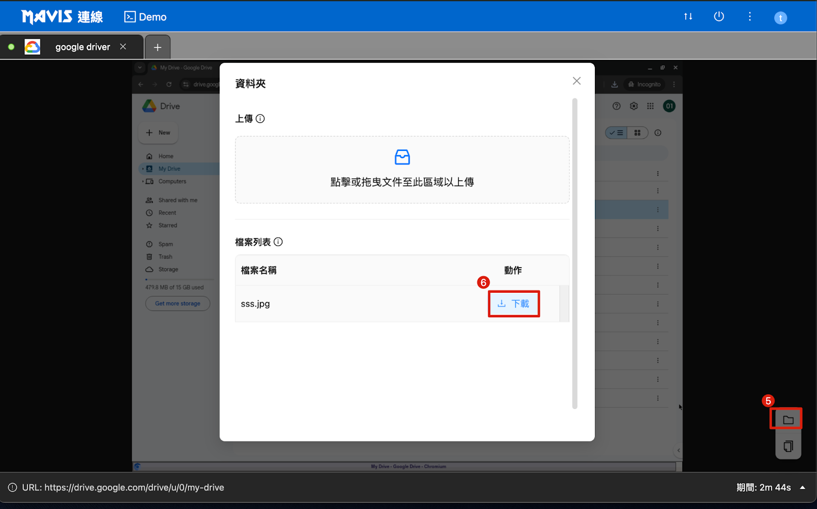 | 5. 點擊 打開資料夾 6. 點擊 下載,即可將檔案下載回本機上 |