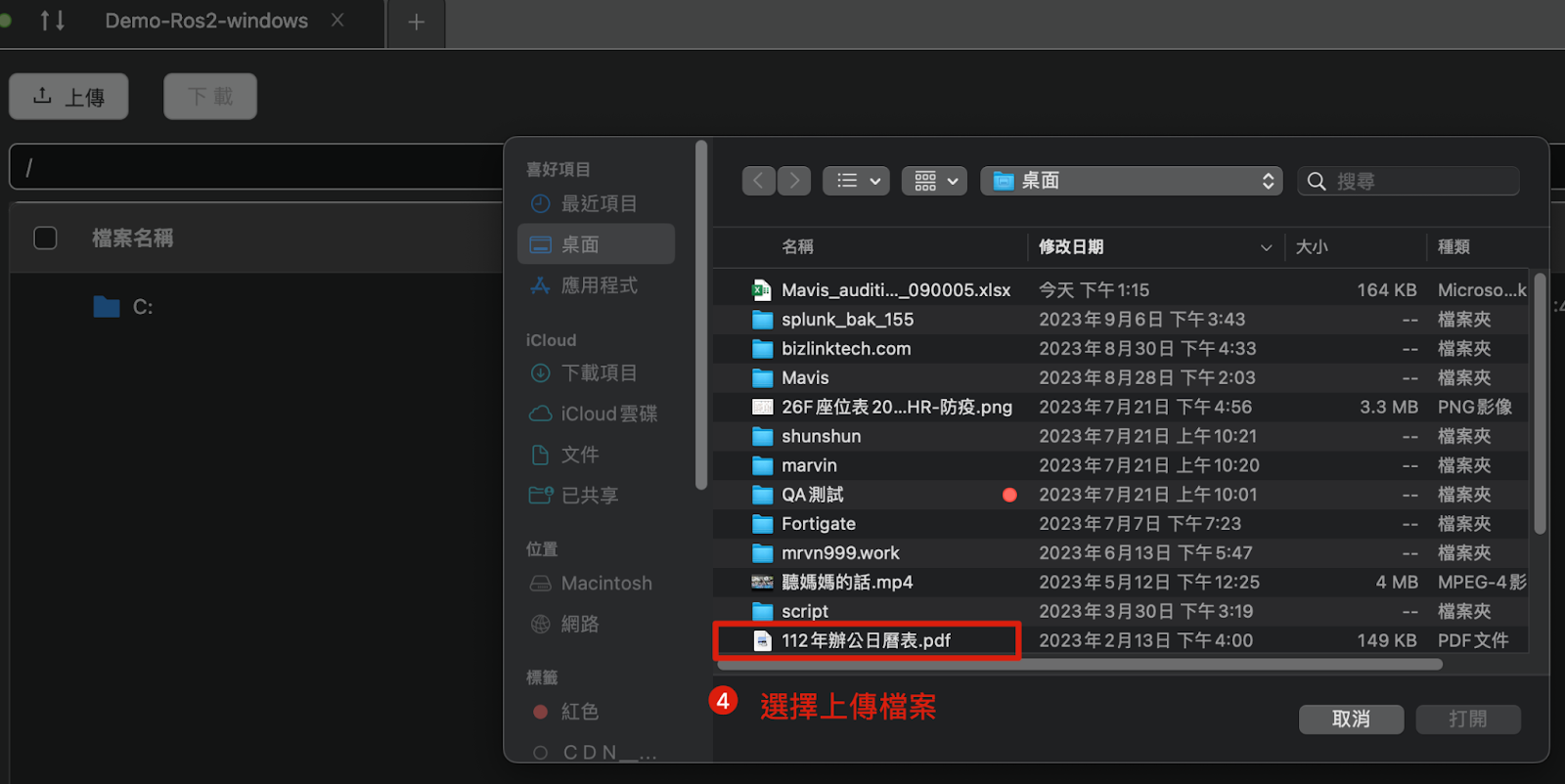 3. アップロードするファイルを選択します。 4. サーバーにアップロードするローカルファイルを選択します。 |