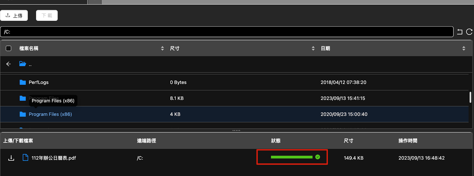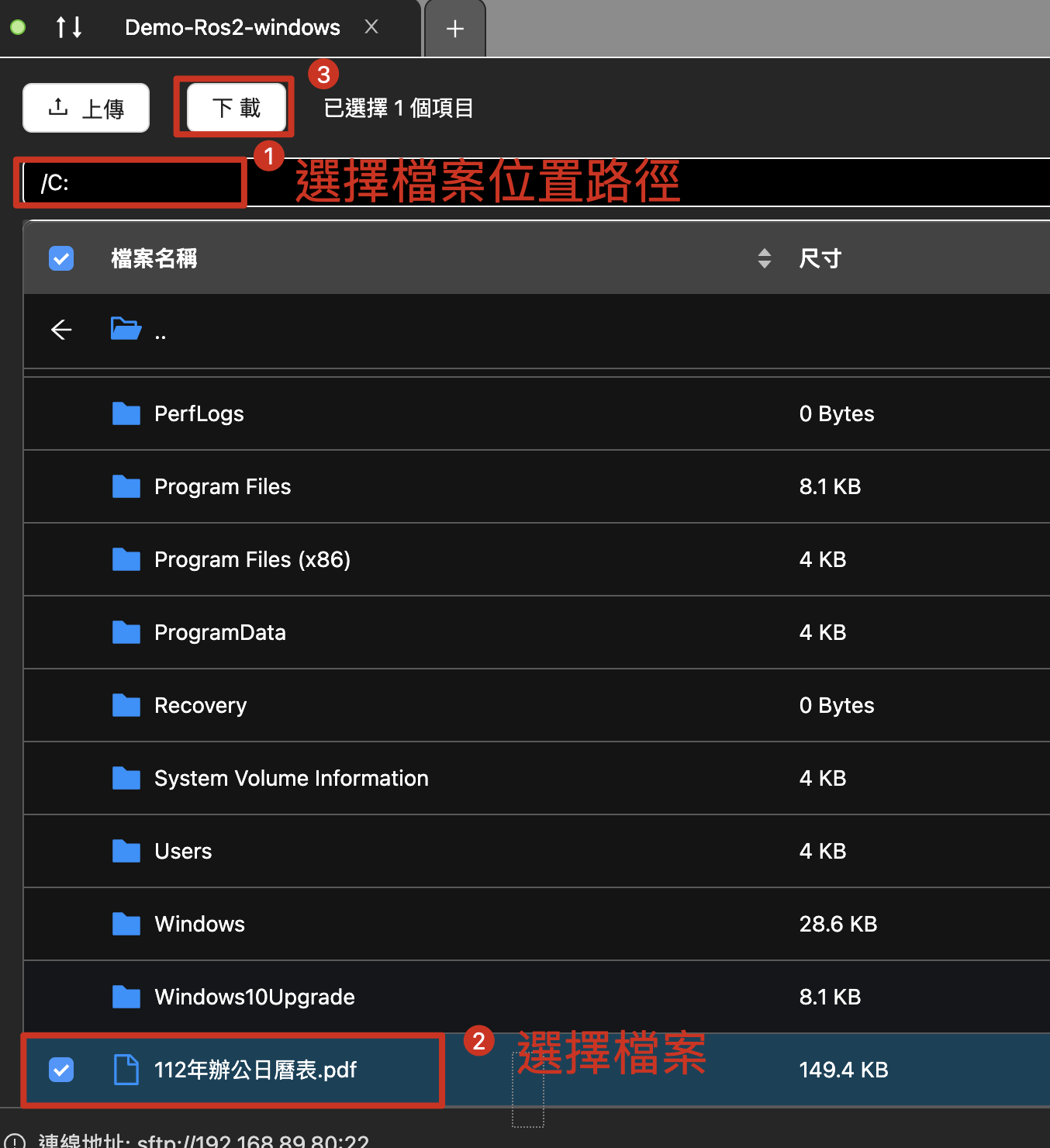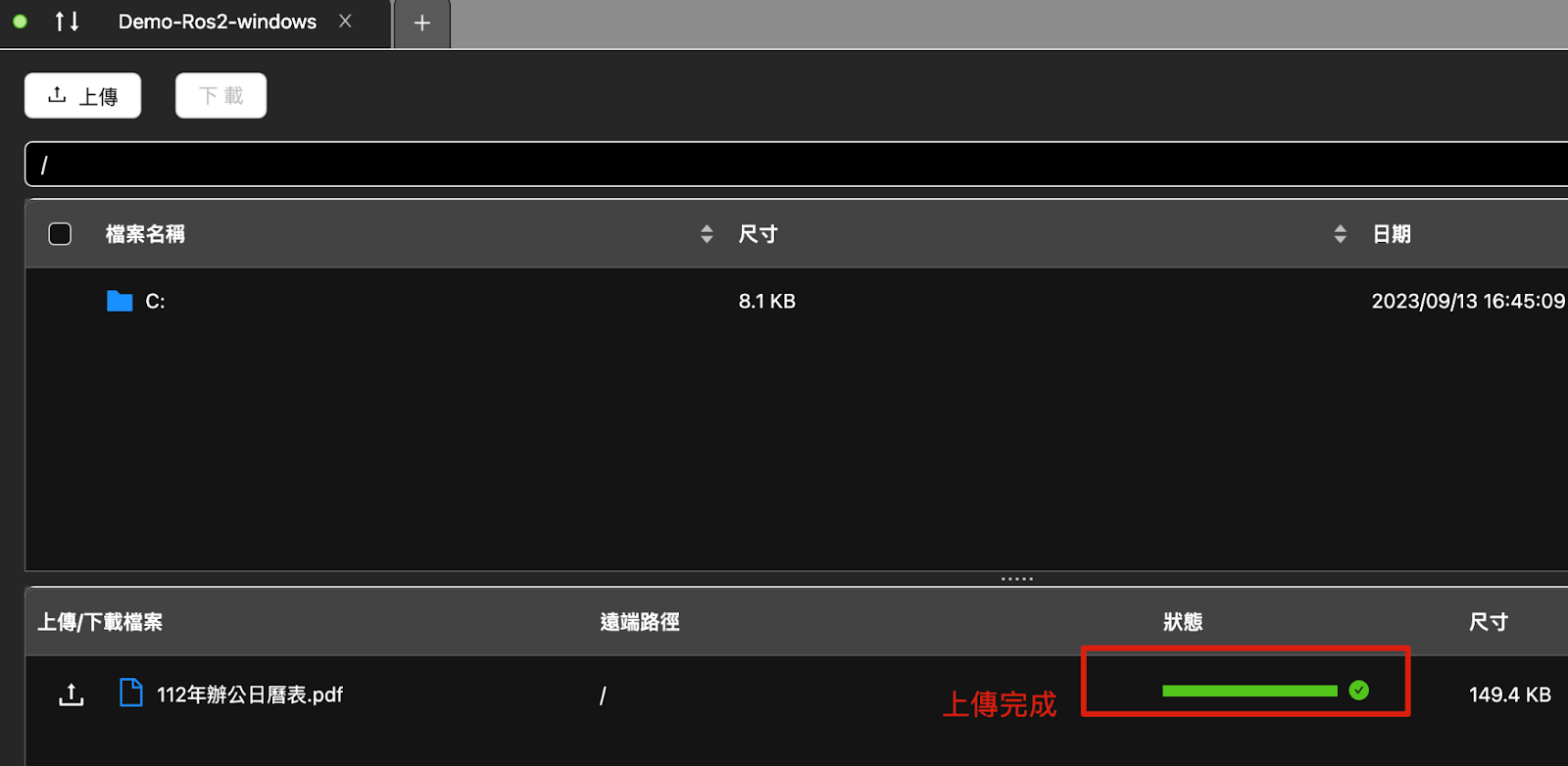 三、SFTPアップロード/ダウンロードの実行