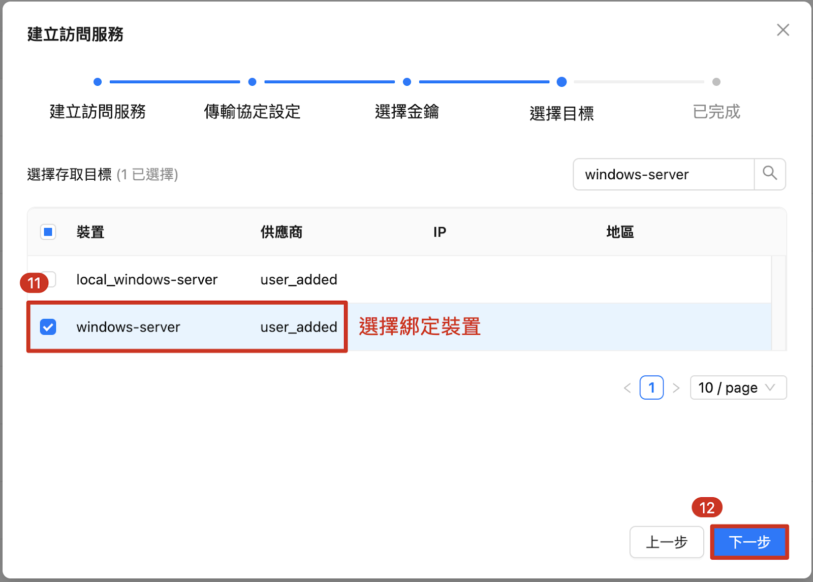 11. バインドターゲットを選択 12. 次へ |