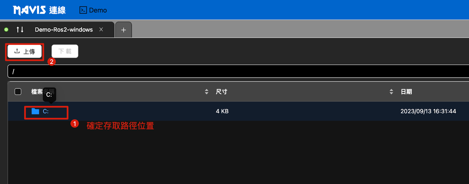 1. アップロードするファイルの保存場所を選択します。 2. アップロードをクリック |
