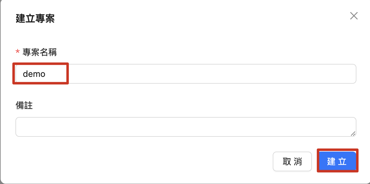 - プロジェクト名 を入力し、「作成」 をクリックするとプロジェクトが作成されます。