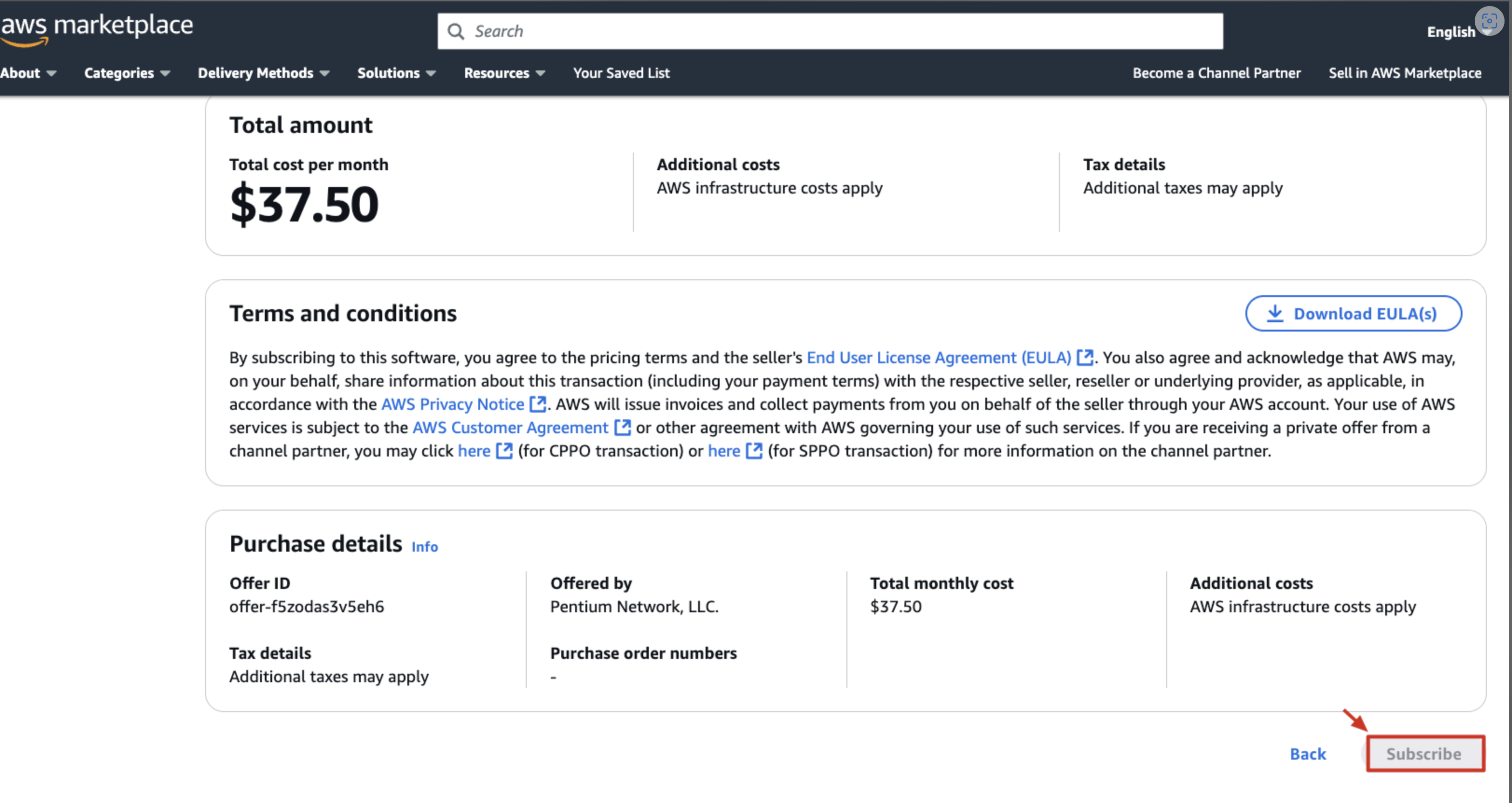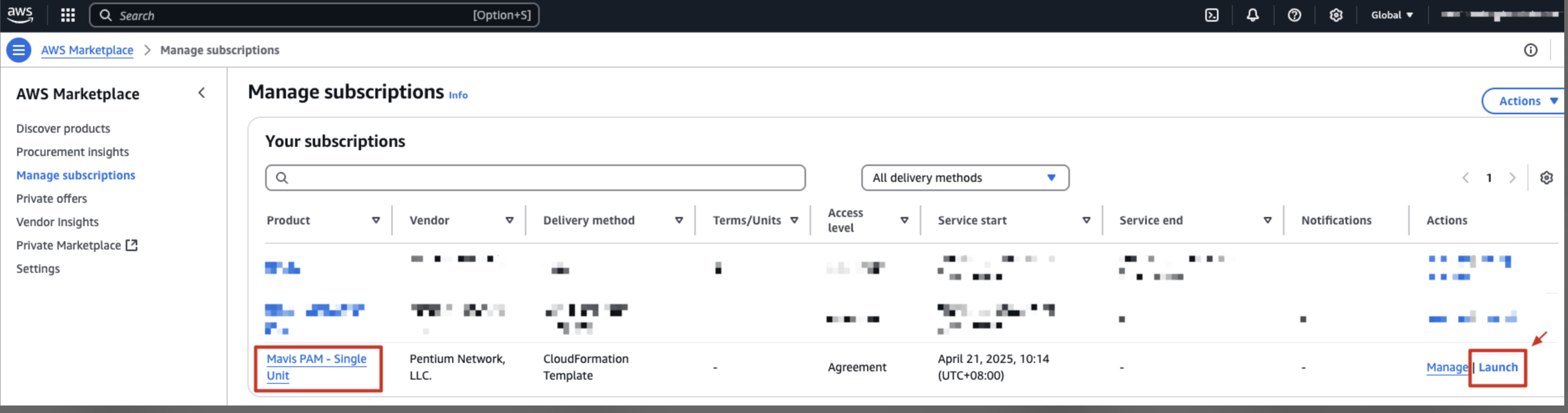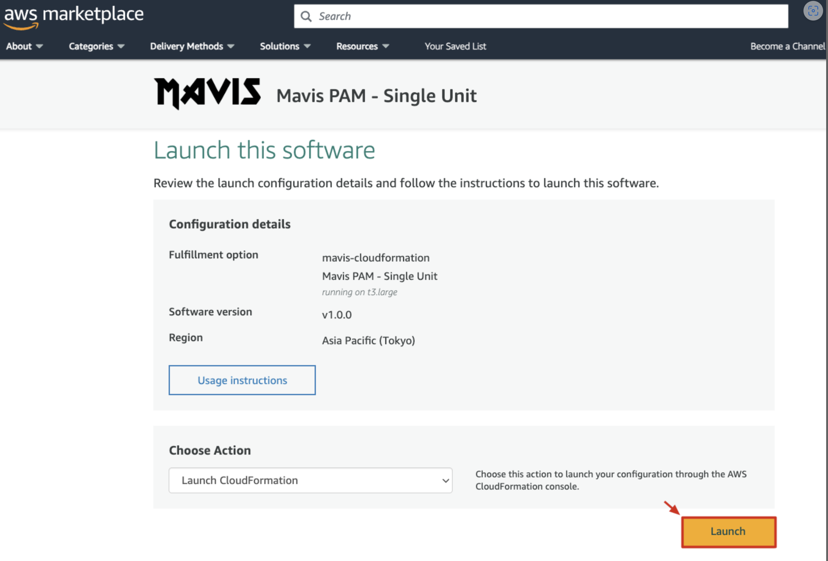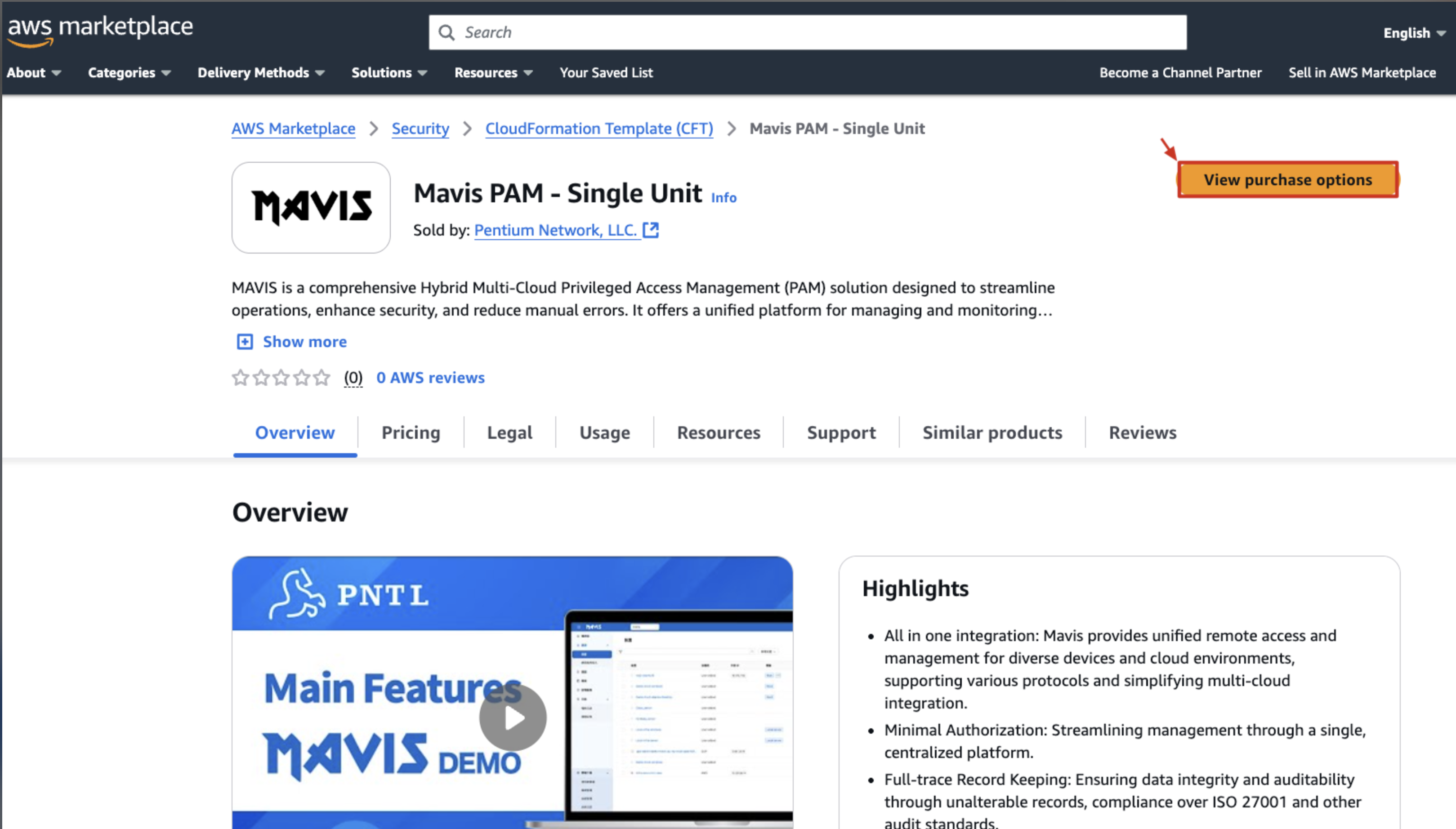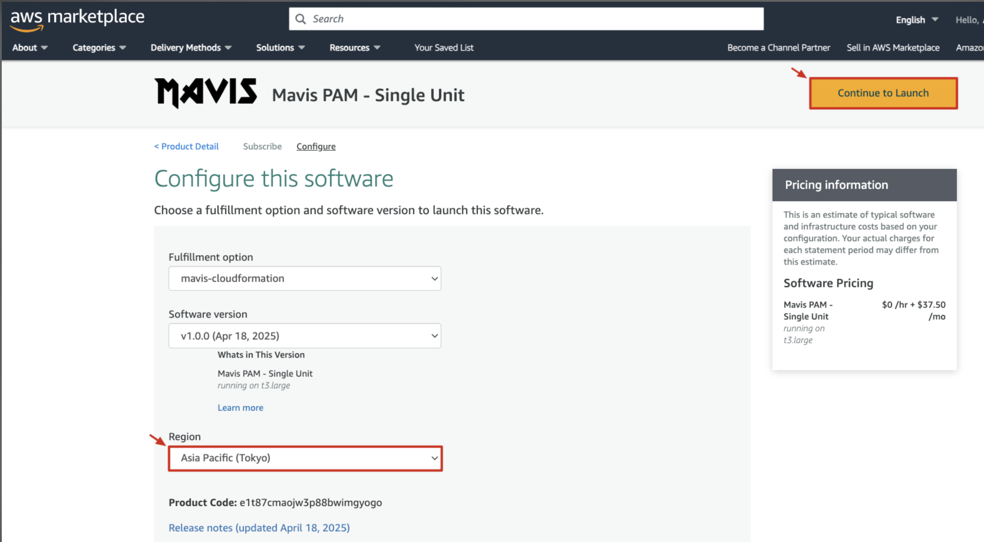 AWS Marketplace にアクセスし、「Mavis PAM」を検索して購入オプションをクリックします。