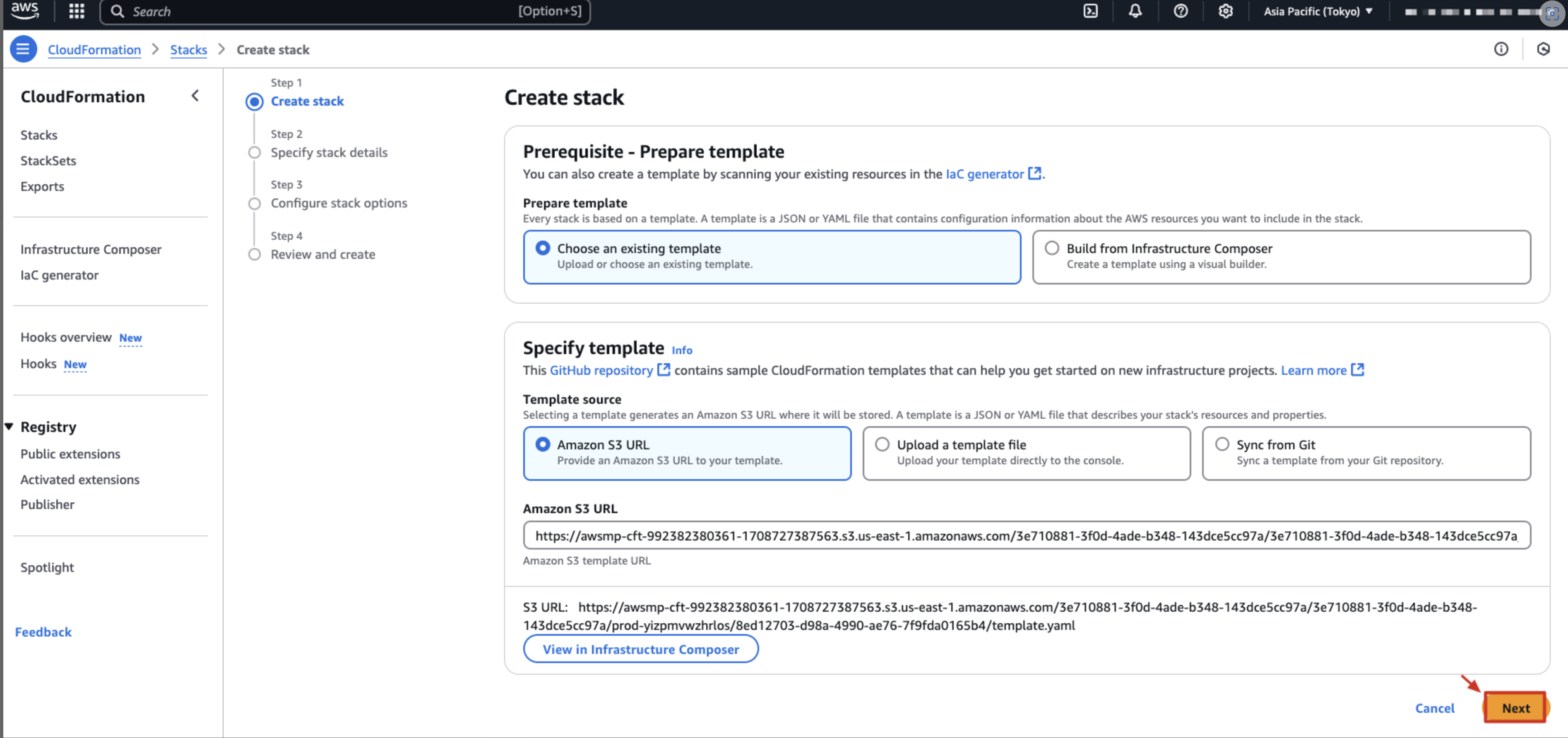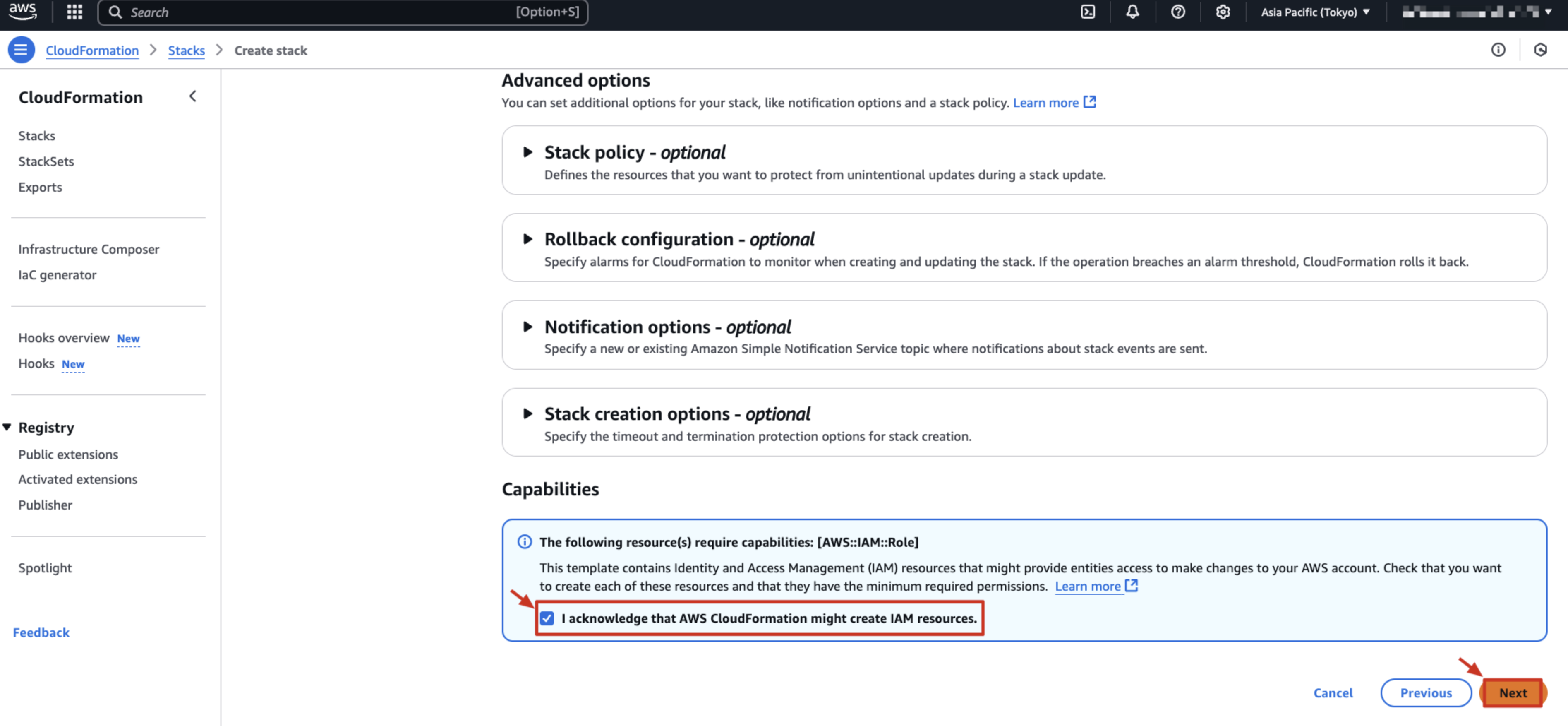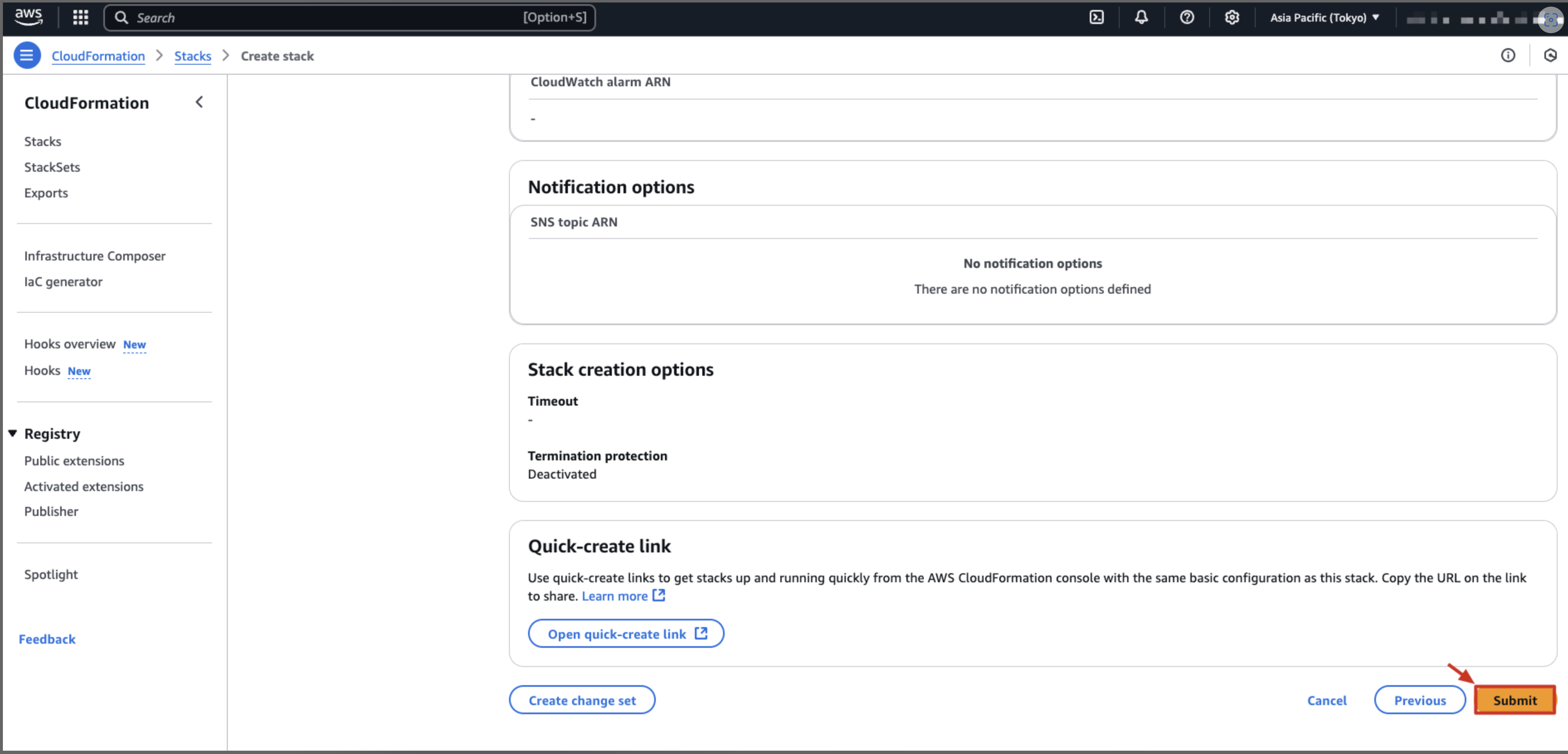 リージョンを選択します。