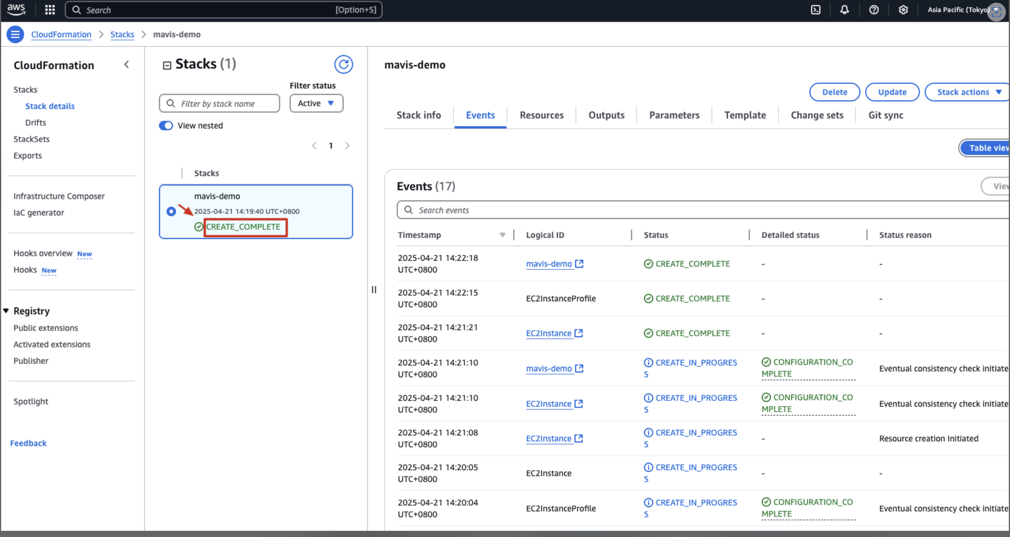 ここまでで、Mavis の起動は完了です。Marketplace が自動的に EC2 インスタンスを作成します。