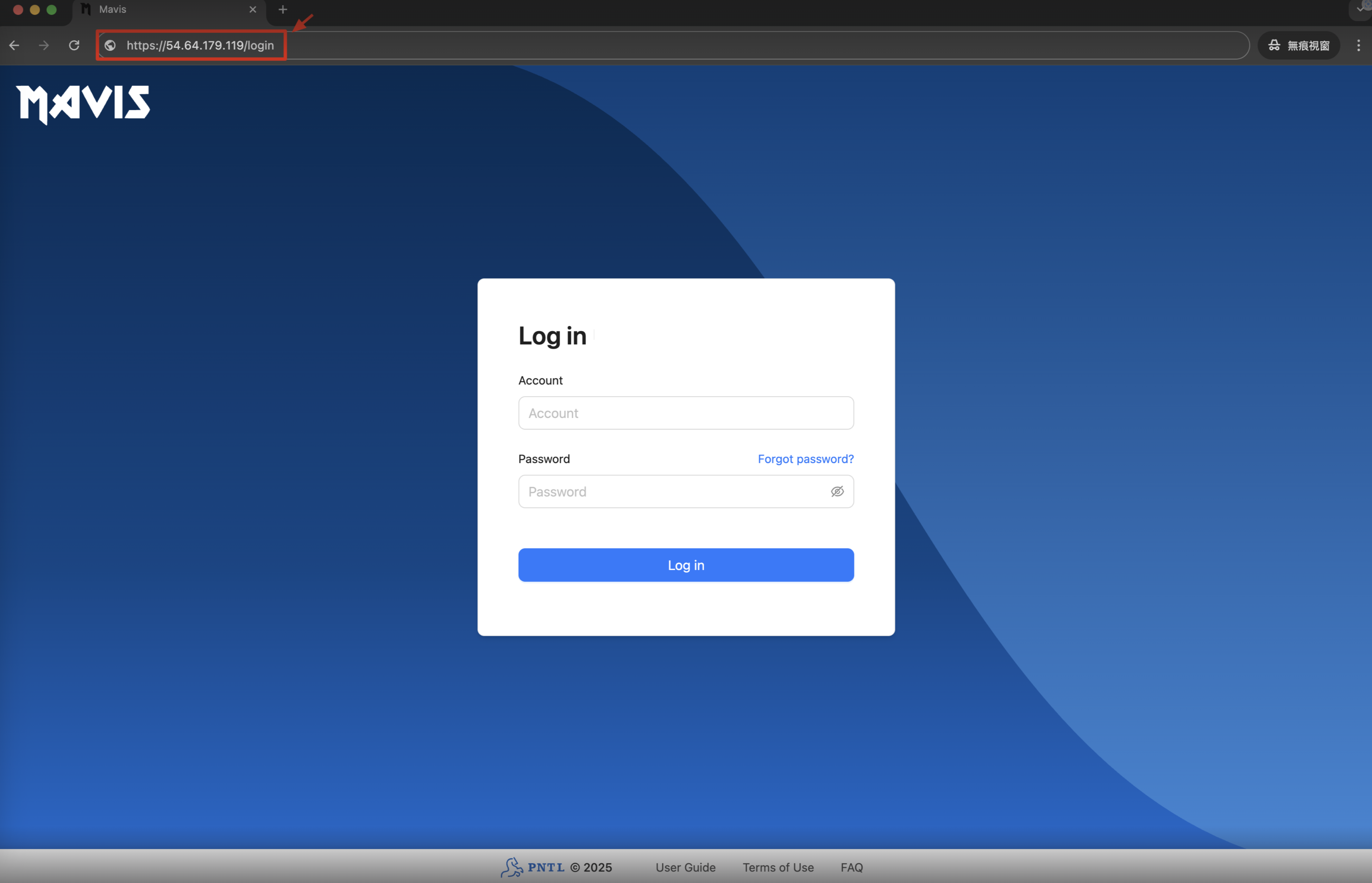 そのパブリック IP に接続し、Mavis の使用を開始します。