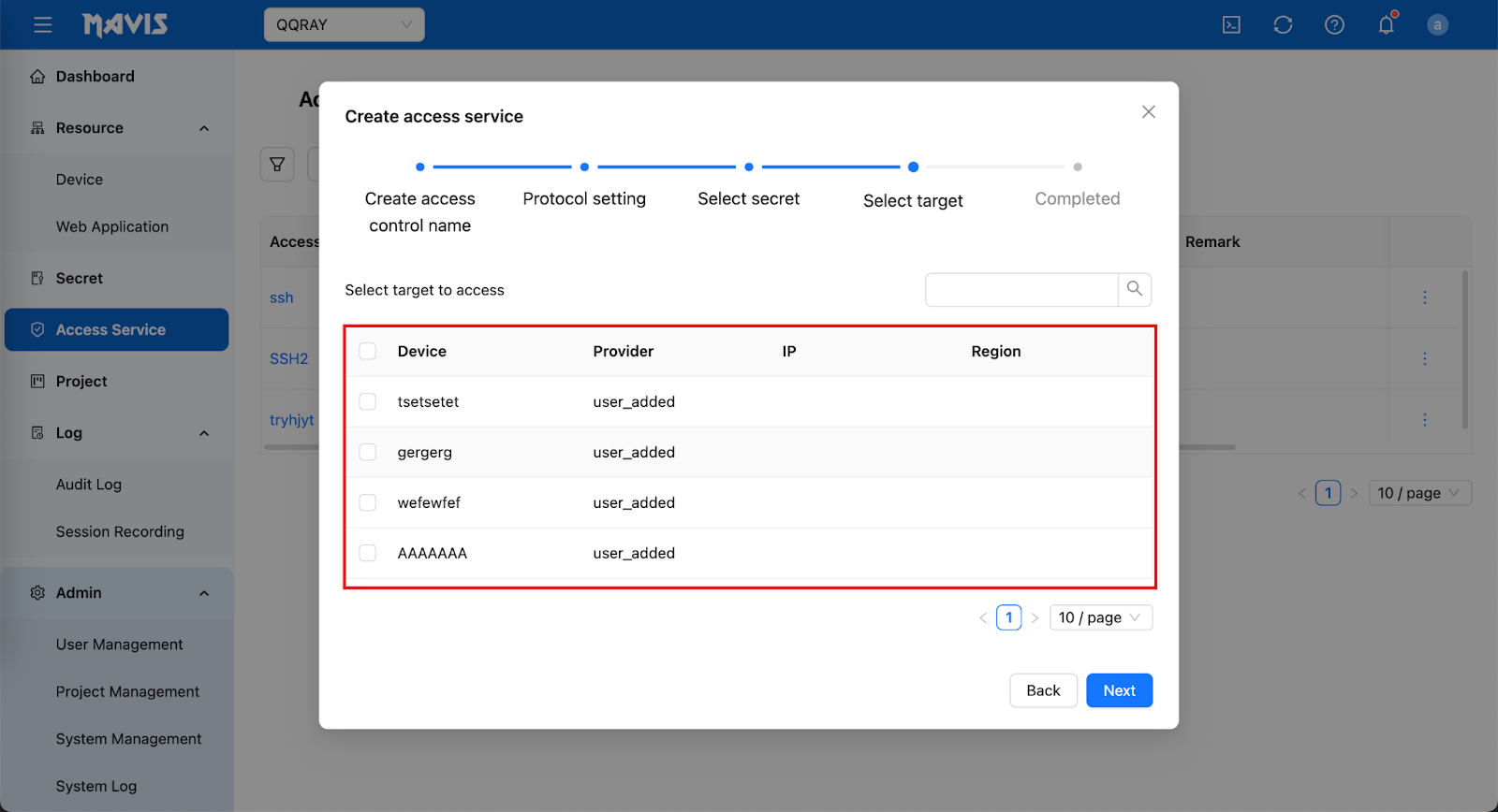 Mavisでは、アカウント/パスワードを直接使用してサーバーに接続することは許可されていません。接続パスワードを保存するアクセスサービスを設定する必要があります。Mavisは、パスワード/SSHキーの漏洩リスクを低減するのに役立ちます。